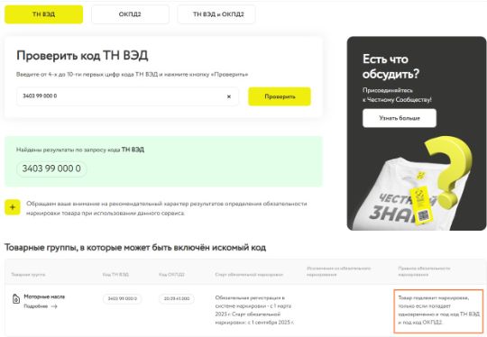 Этот этап мы прошли за Вас и подготовили выверенный перечень смазок, которые необходимо маркировать в 2025 году. Для того, чтобы понять, попадает ли то или иное наименование смазки под обязательную маркировку, необходимо, чтобы код ТН ВЭД и ОКПД2 попали под маркировку одновременно. Если ОКПД2 попадает, а ТН ВЭД нет, значит на сегодняшний день смазка не подлежит маркировке.